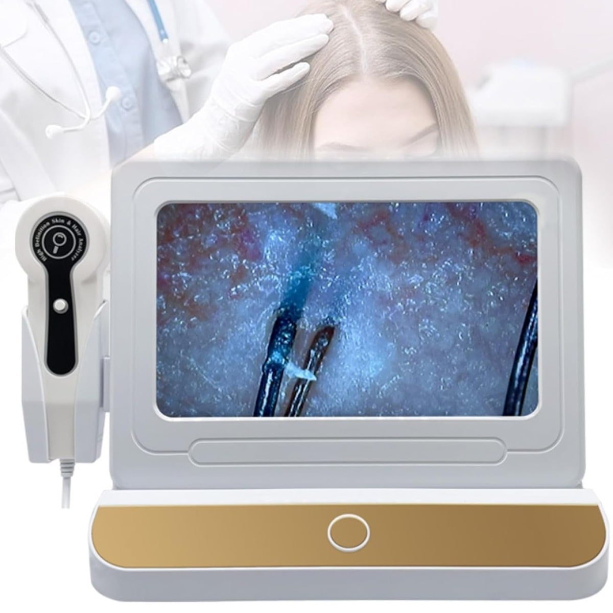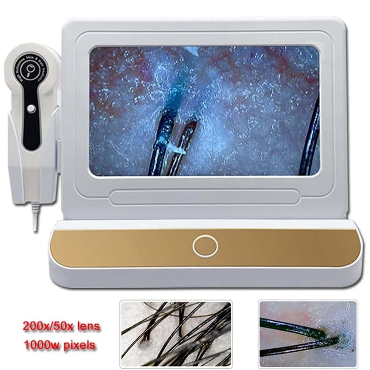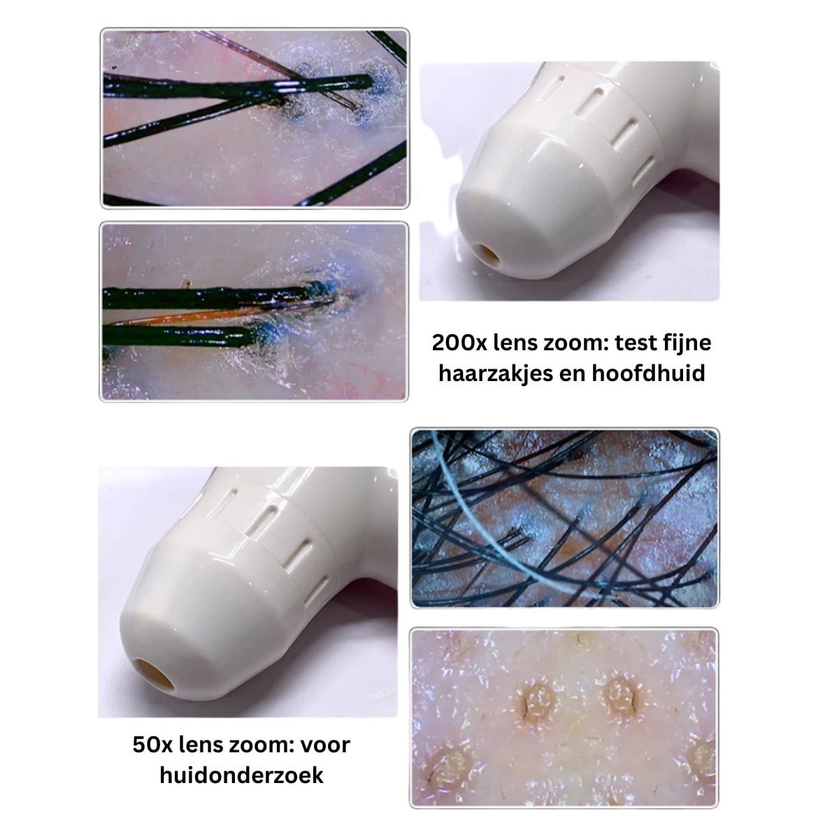 200X Lens: Duik diep in de details. Analyseer individuele haarfollikels, detecteer hoofdhuidproblemen zoals roos, verstopte poriën of de eerste tekenen van haaruitval. Overtuig uw klant moeiteloos van de noodzaak van een gespecialiseerde hoofdhuidbehandeling of een kuur voor haarherstel.